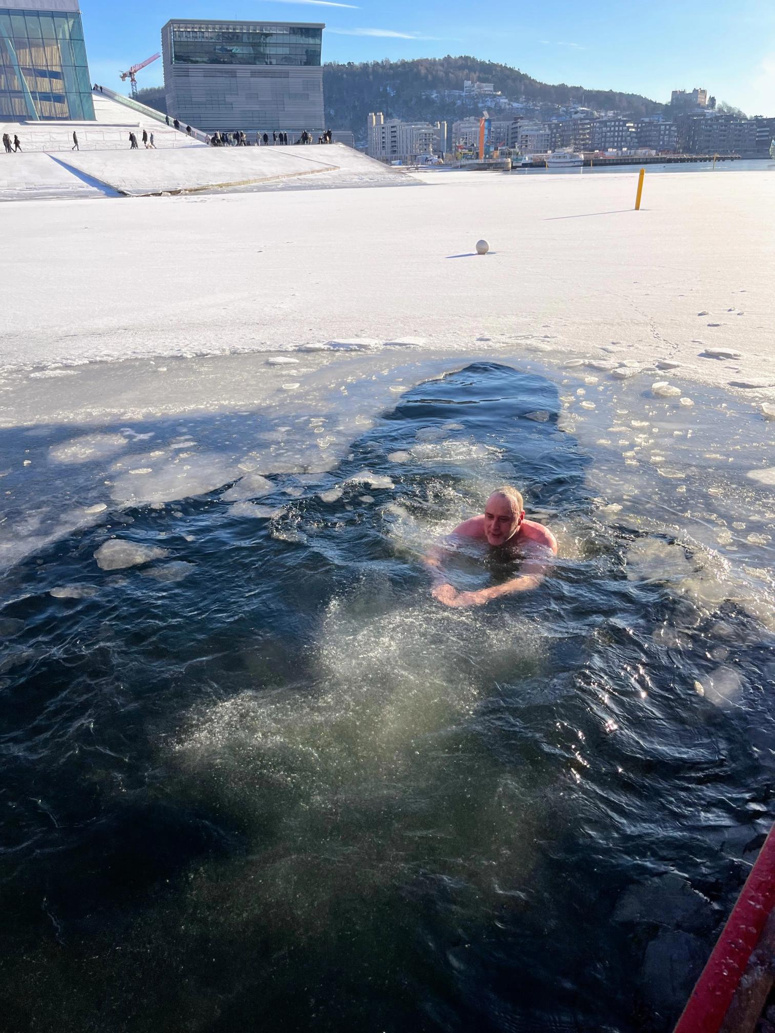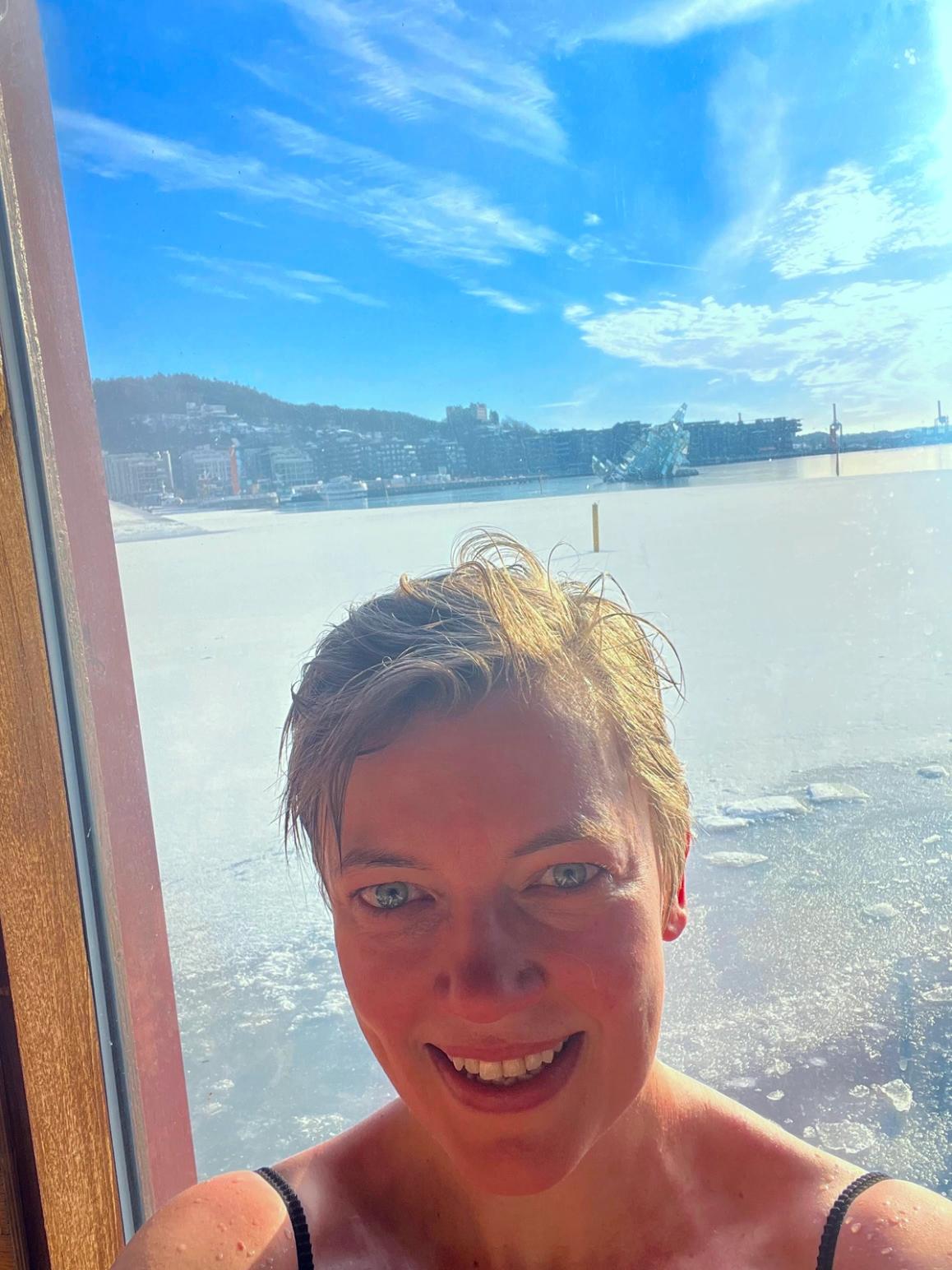 (Foto: Bilde av Martins første møte med isbading på Oslo badstuforening, Langkaia i Oslo, februar 2023)