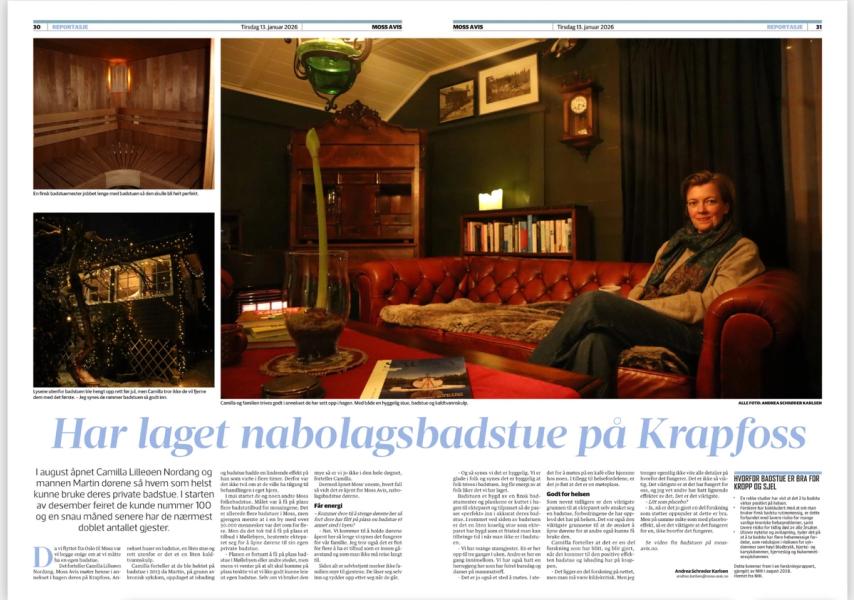 Badstua vår på Krapfoss brukes som testbadstue, og den kan du booke på nettsiden.